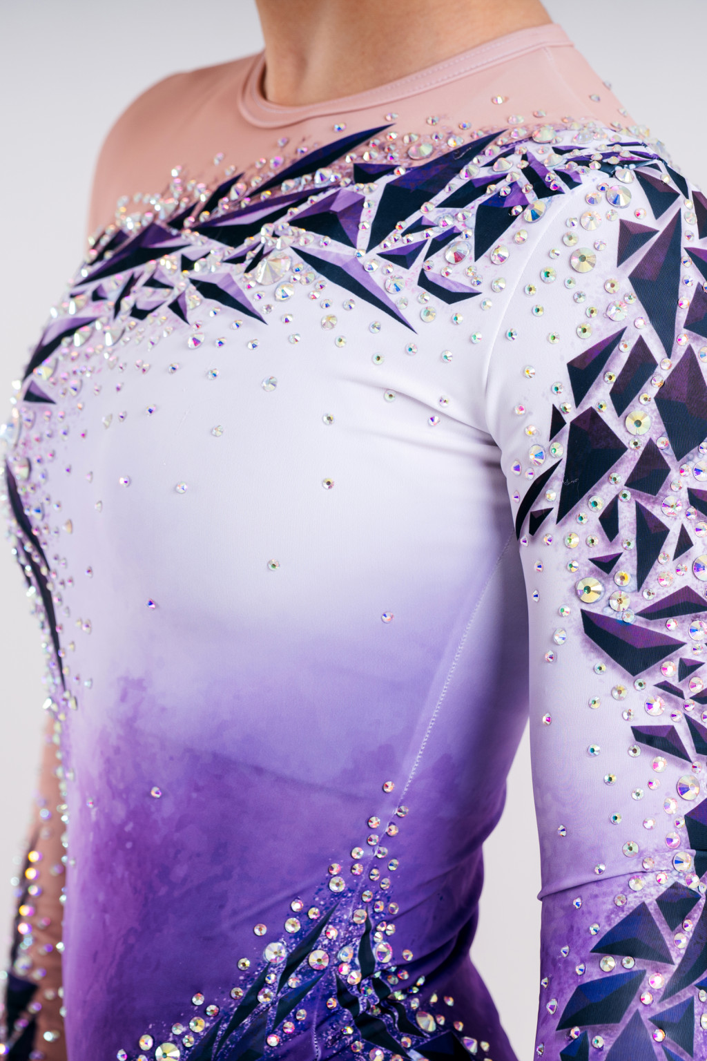 Sharp, crystal-like shapes in deep violet shades create a bold yet refined appearance. The dynamic pattern captures precision and elegance in perfect balance.